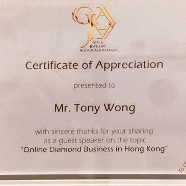 信心源於專業的標準,Tony在寶石學的專業資格及認受程度,對於現有和潛在客戶來說,帶來無容置疑信心。